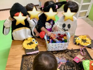 みんなで仮装をして、ハロウィンのお話を聞いたり、