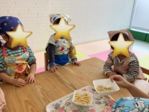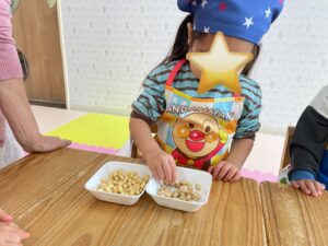 ぞう組は、まず3種類の大豆を見たり触ったりしました。